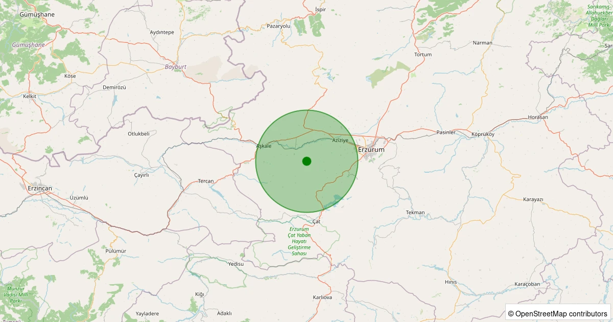 Son 7 gün içinde Aşkale - Ortabahçe noktasından 100 km yarıçap içerisinde meydana gelen diğer depremler:
