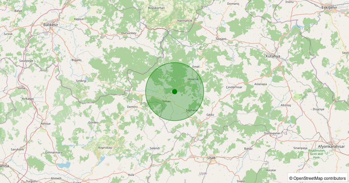 Son 7 gün içinde Simav - Karacaören Köyü noktasından 100 km yarıçap içerisinde meydana gelen diğer depremler: