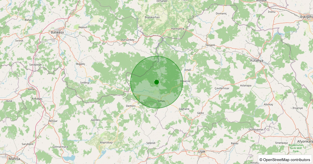 Son 7 gün içinde Simav - Yeniler Köyü noktasından 100 km yarıçap içerisinde meydana gelen diğer depremler: