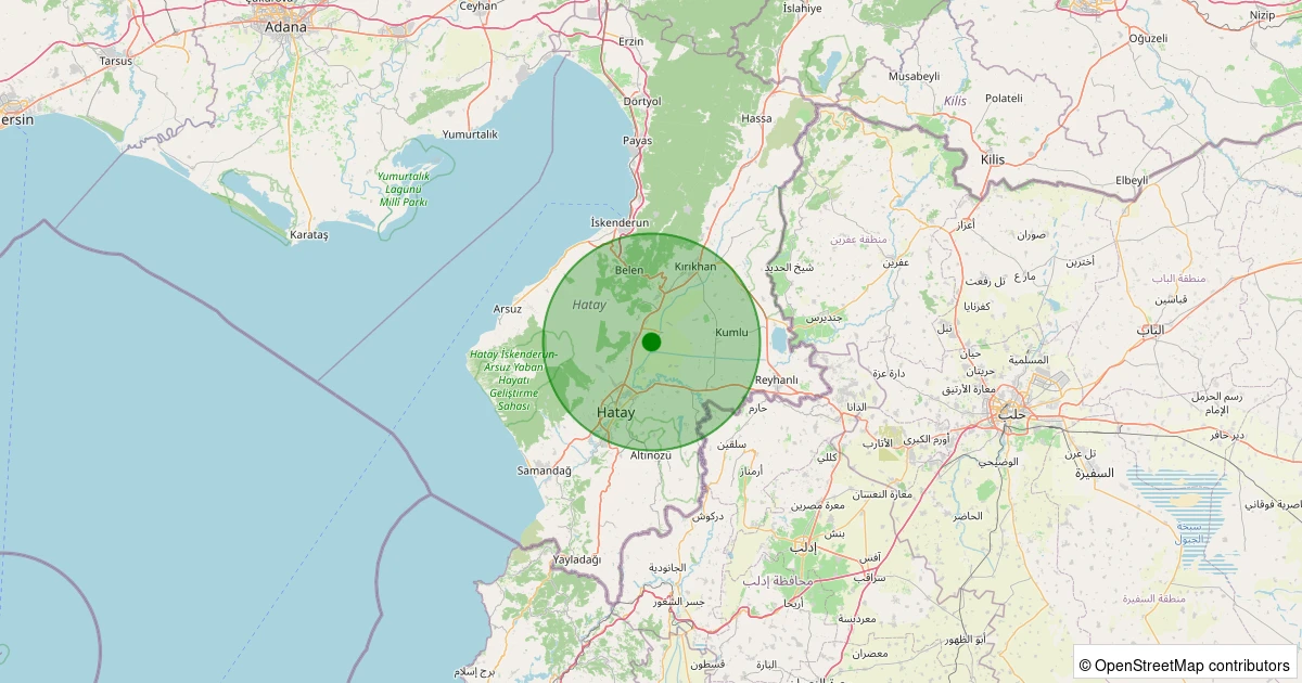 Son 7 gün içinde Antakya - Arpahan noktasından 100 km yarıçap içerisinde meydana gelen diğer depremler: