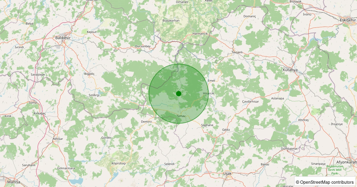 Son 7 gün içinde Simav - Yeniler Köyü noktasından 100 km yarıçap içerisinde meydana gelen diğer depremler: