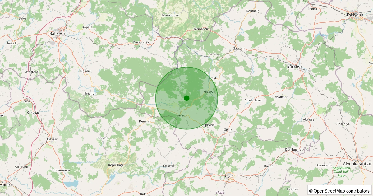Son 7 gün içinde Simav - Eğirler Köyü noktasından 100 km yarıçap içerisinde meydana gelen diğer depremler: