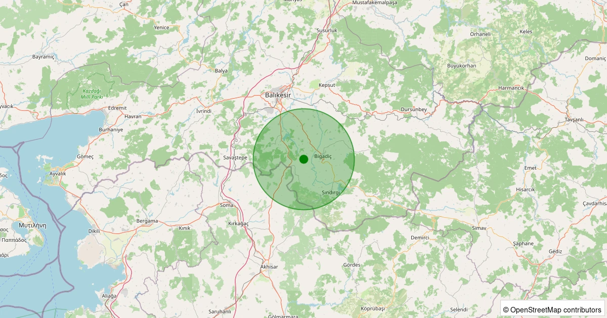 Son bir hafta içerisinde Balıkesir şehri Bigadiç - Çekirdekli noktasından 100 km yarıçap içerisinde toplamda 1159 deprem kaydedilmiştir. Bu depremlerden en büyüğü 4.9 büyüklüğünde ve en sığ odaklısı 0.00 kilometre derinlikte gerçekleşmiştir.