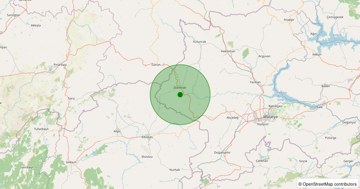 Son 7 gün içinde Darende - Karaoğuz noktasından 100 km yarıçap içerisinde meydana gelen diğer depremler: