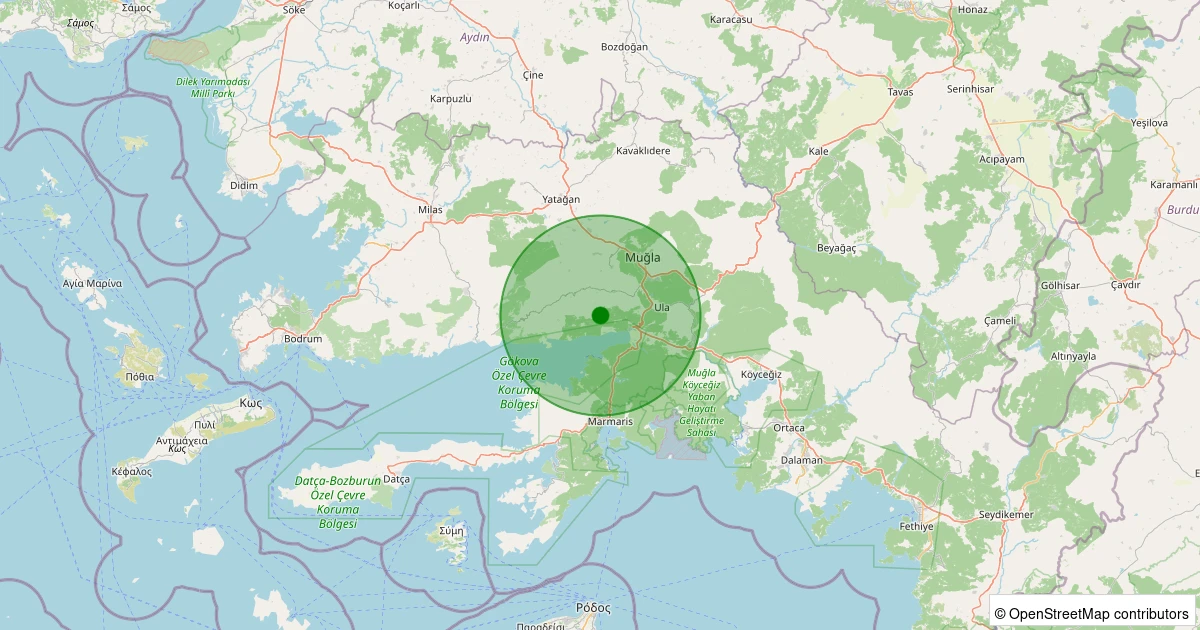 Son 7 gün içinde Menteşe noktasından 100 km yarıçap içerisinde meydana gelen diğer depremler: