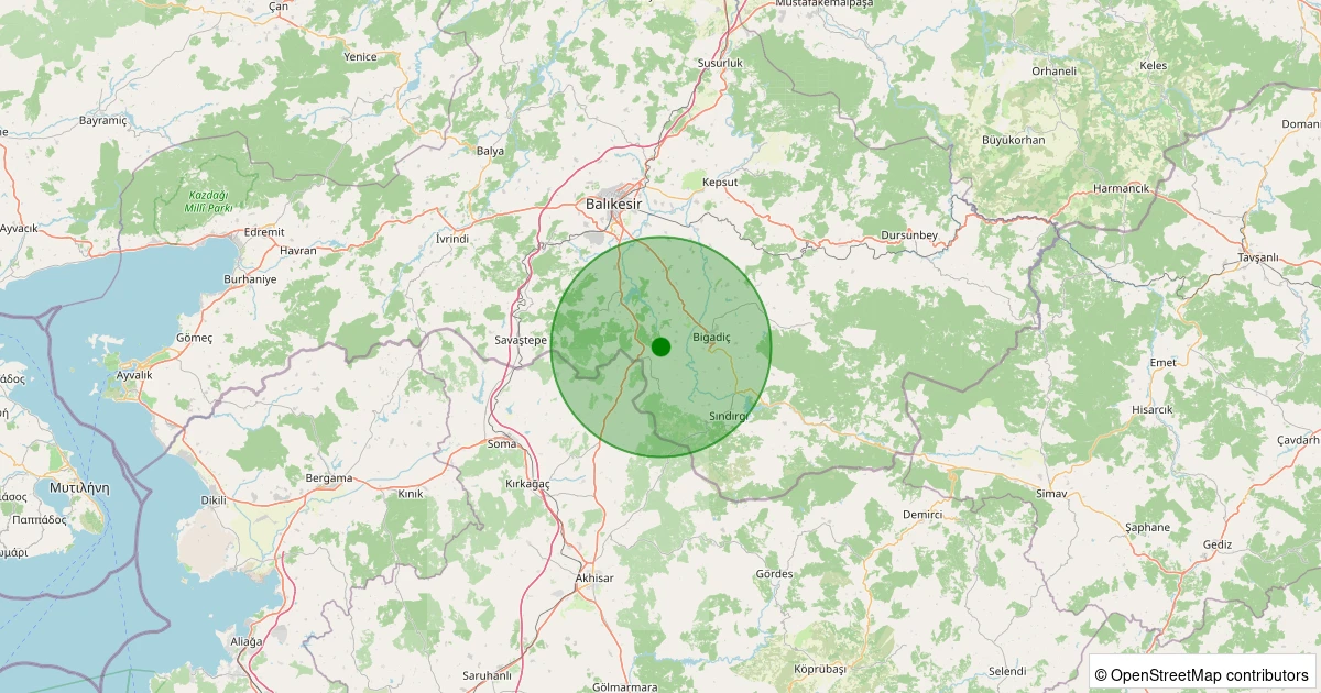 Son bir hafta içerisinde Balıkesir şehri Bigadiç - Hamidiye noktasından 100 km yarıçap içerisinde toplamda 1169 deprem kaydedilmiştir. Bu depremlerden en büyüğü 4.9 büyüklüğünde ve en sığ odaklısı 0.00 kilometre derinlikte gerçekleşmiştir.