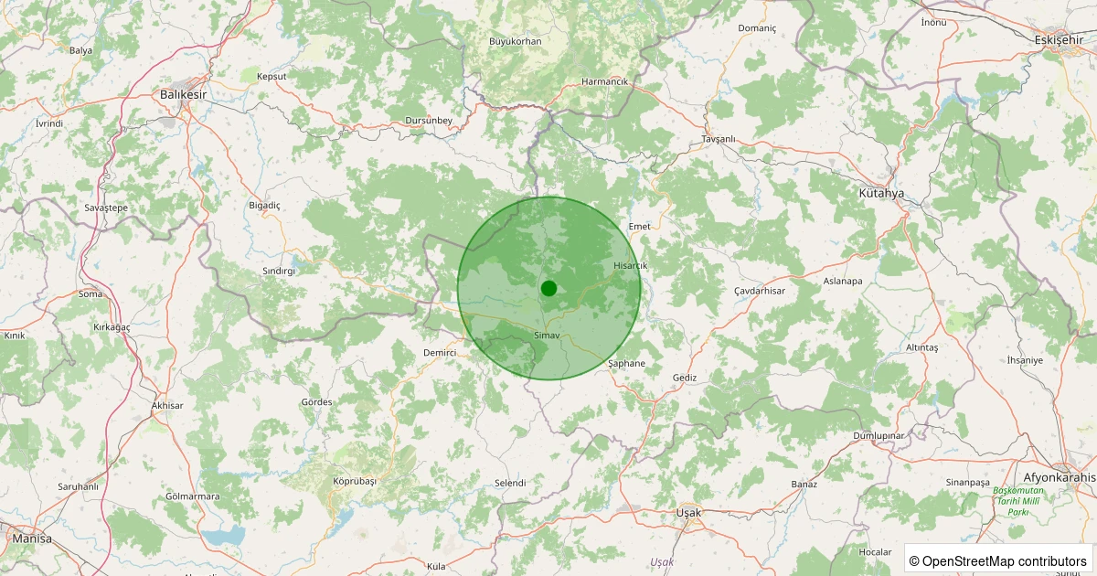 Son 7 gün içinde Simav - Eğirler Köyü noktasından 100 km yarıçap içerisinde meydana gelen diğer depremler:
