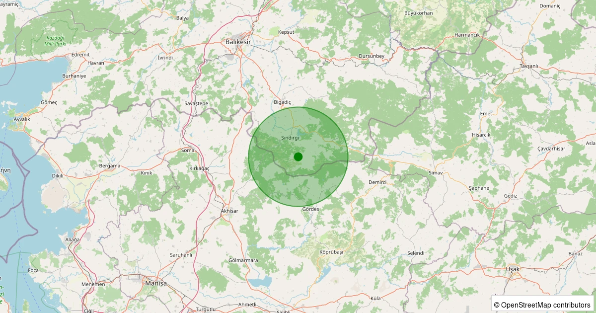 Son 7 gün içinde Sındırgı - Aktaş noktasından 100 km yarıçap içerisinde meydana gelen diğer depremler:
