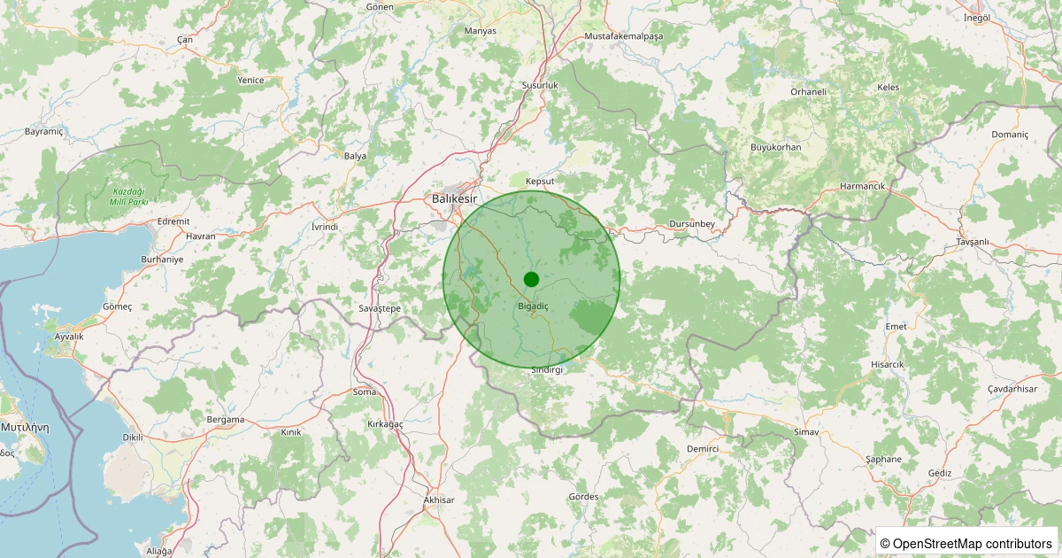 Son bir hafta içerisinde Balıkesir şehri Bigadiç - İskele noktasından 100 km yarıçap içerisinde toplamda 1163 deprem kaydedilmiştir. Bu depremlerden en büyüğü 4.9 büyüklüğünde ve en sığ odaklısı 0.00 kilometre derinlikte gerçekleşmiştir.