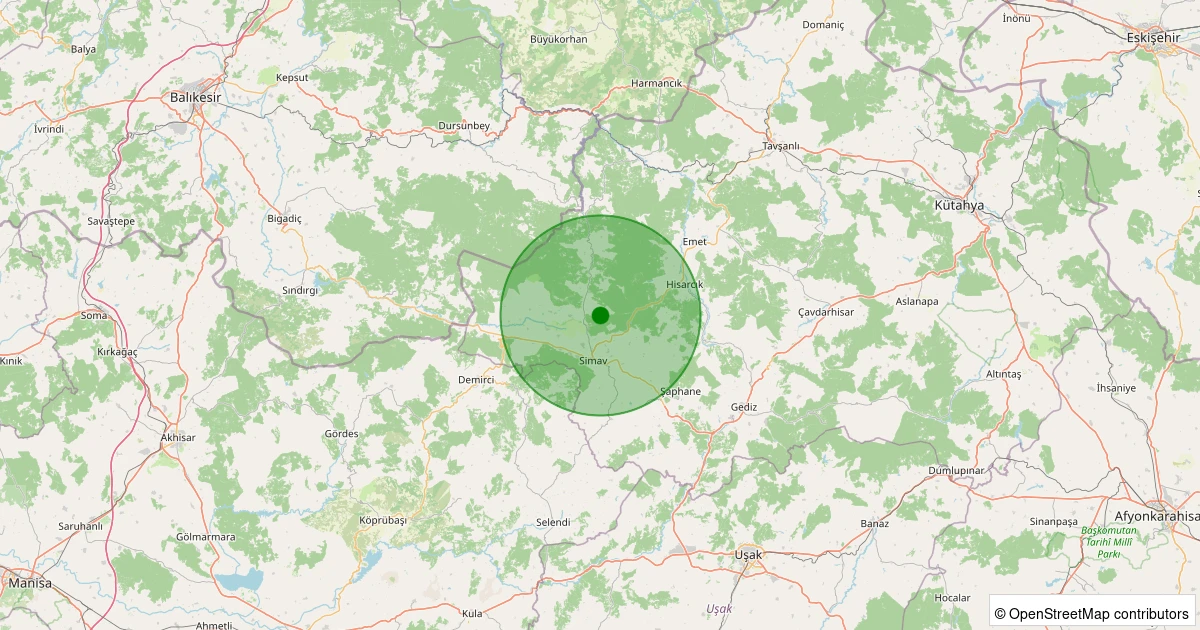 Son 7 gün içinde Simav - Naşa/Fatih noktasından 100 km yarıçap içerisinde meydana gelen diğer depremler: