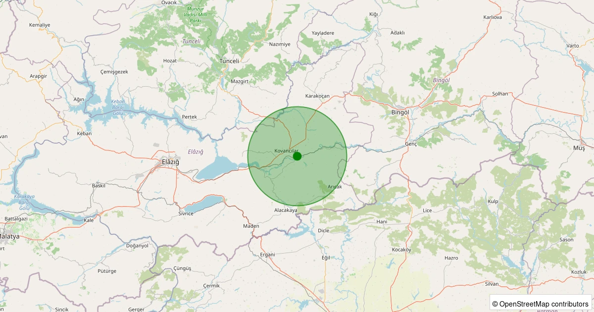 Son 7 gün içinde Palu - Numune noktasından 100 km yarıçap içerisinde meydana gelen diğer depremler: