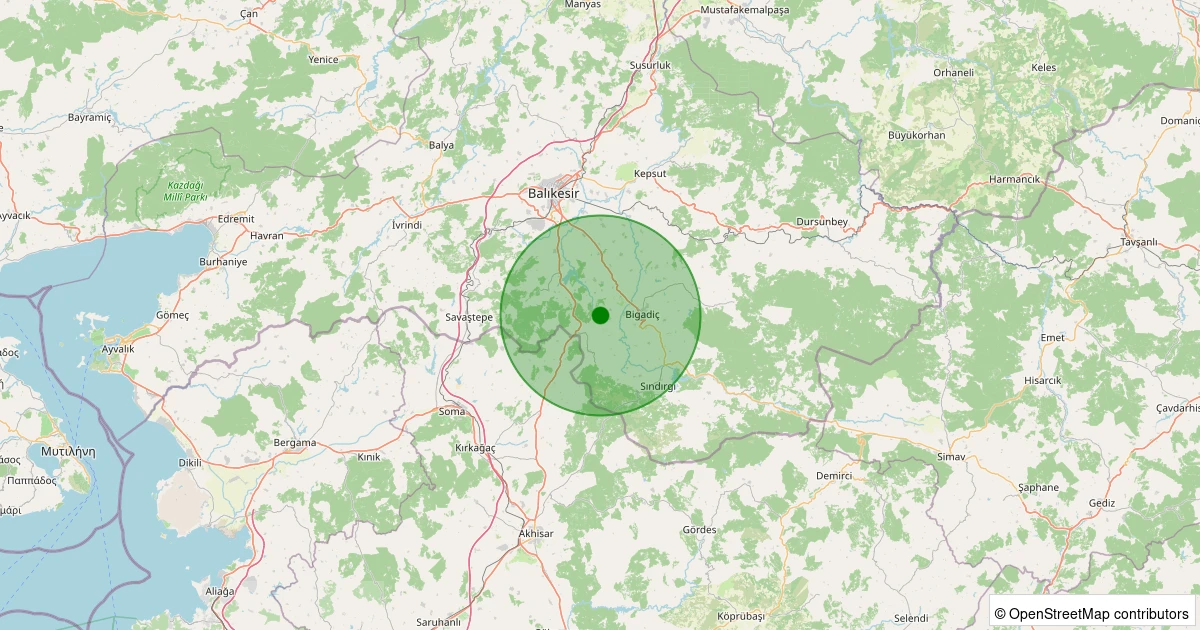 Son 7 gün içinde Bigadiç - Babaköy noktasından 100 km yarıçap içerisinde meydana gelen diğer depremler: