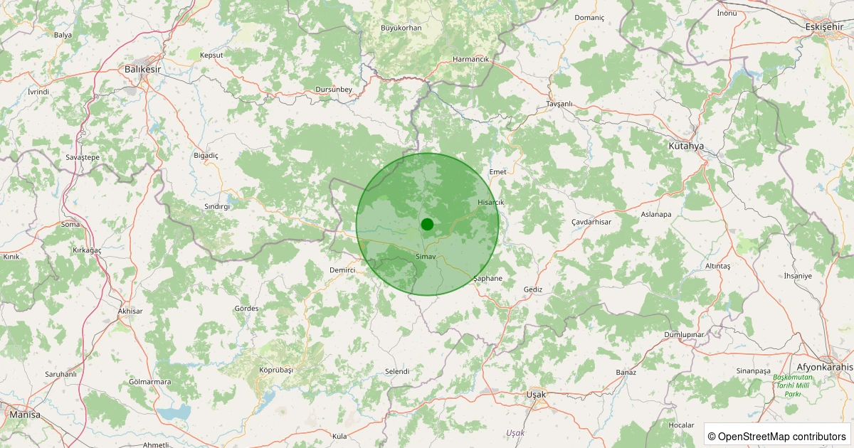 Son 7 gün içinde Simav - Yemişli Köyü noktasından 100 km yarıçap içerisinde meydana gelen diğer depremler: