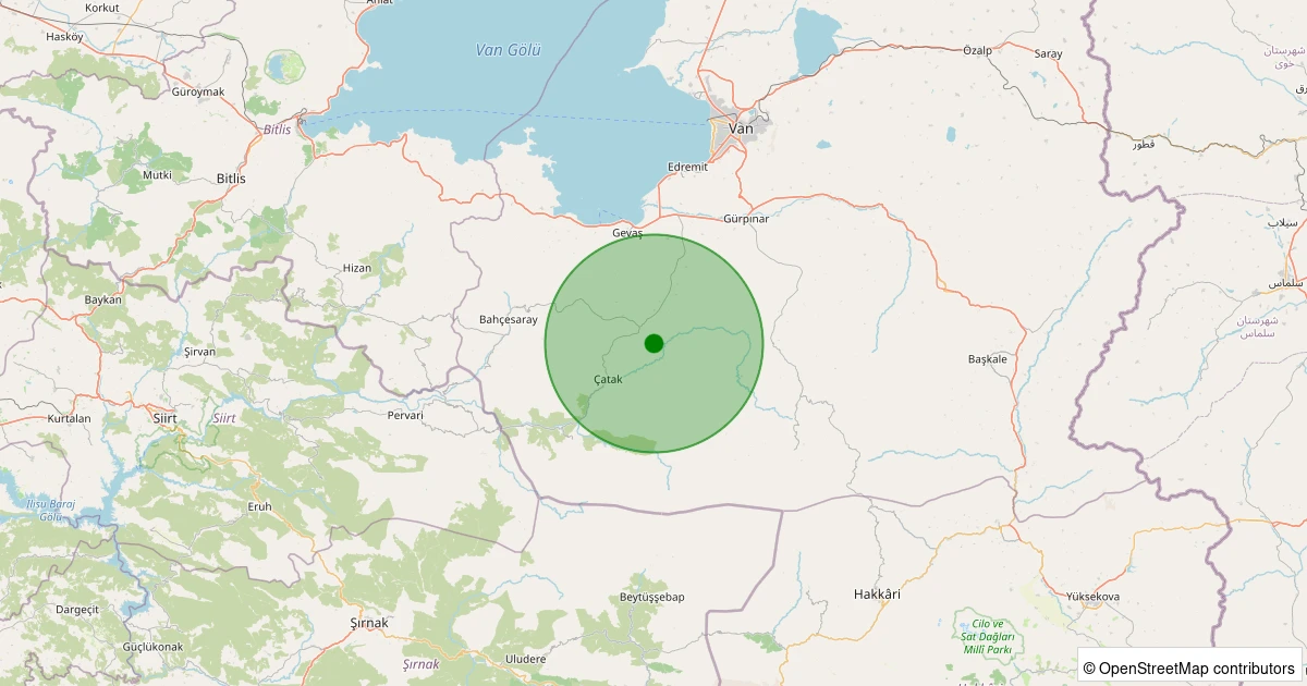 Son 7 gün içinde Çatak - Eliaçık noktasından 100 km yarıçap içerisinde meydana gelen diğer depremler: