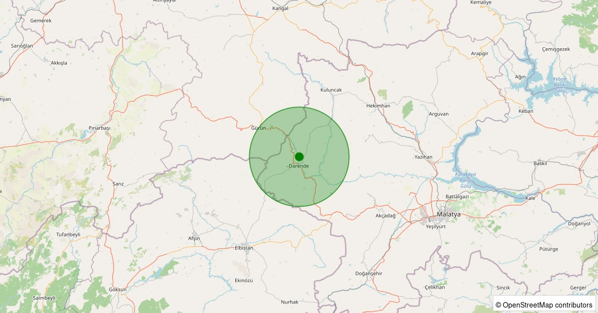 Son 7 gün içinde Darende - Hacılar Sıragoz noktasından 100 km yarıçap içerisinde meydana gelen diğer depremler: