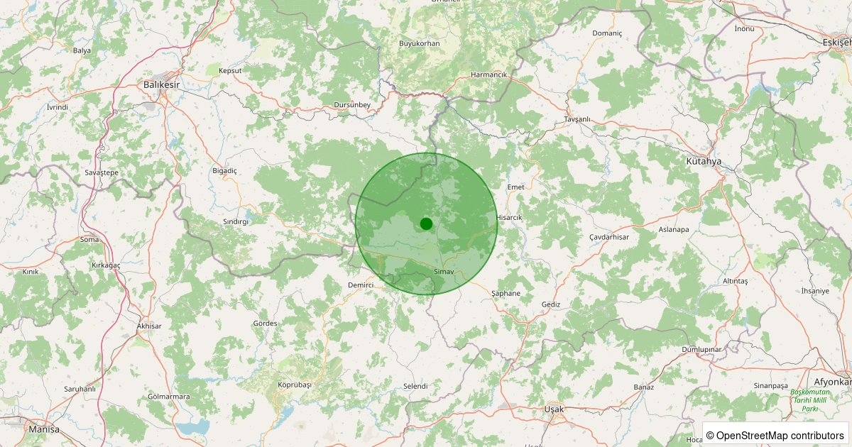 Son 7 gün içinde Simav - Kayalıdere Köyü noktasından 100 km yarıçap içerisinde meydana gelen diğer depremler: