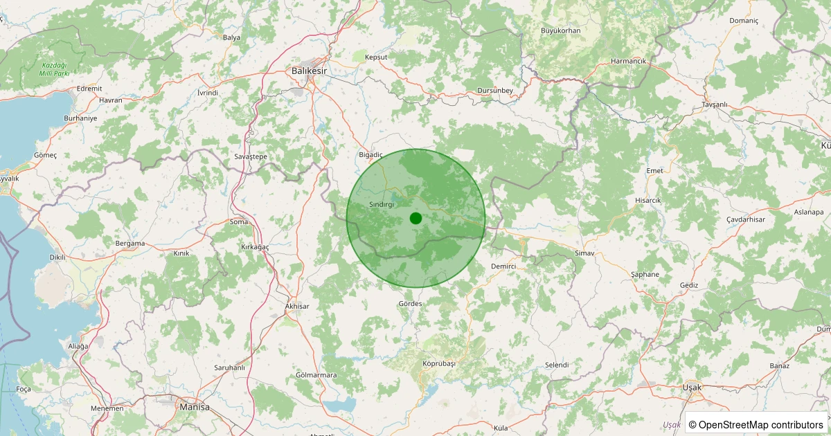 Son 7 gün içinde Sındırgı - Aslandede noktasından 100 km yarıçap içerisinde meydana gelen diğer depremler: