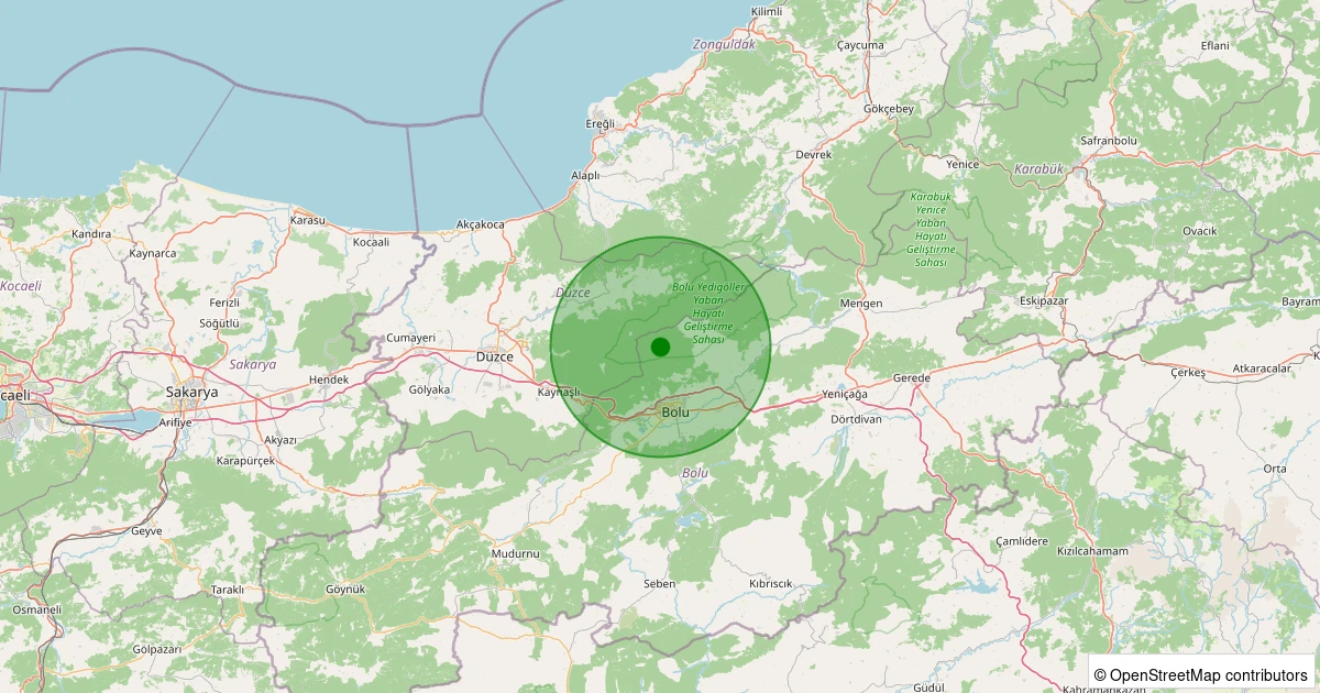 Son 7 gün içinde Yığılca - Hacıyeri Köyü noktasından 100 km yarıçap içerisinde meydana gelen diğer depremler: