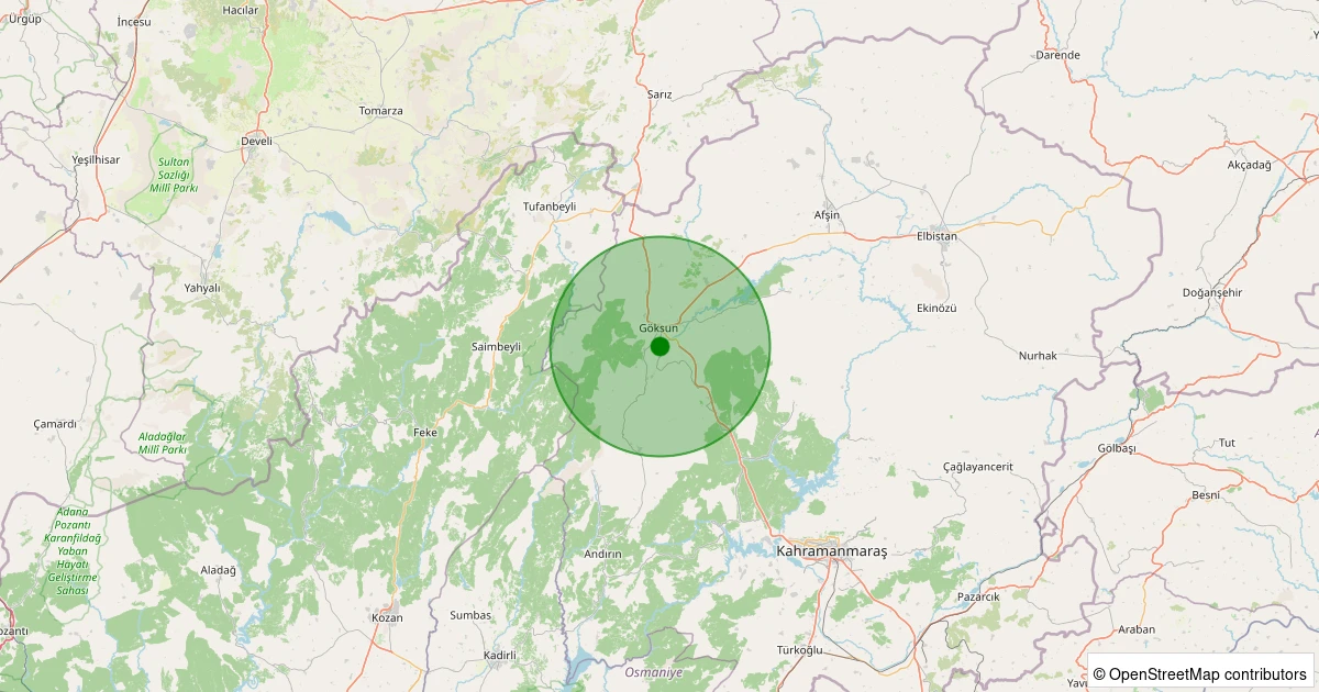 Son 7 gün içinde Göksun - Kireç noktasından 100 km yarıçap içerisinde meydana gelen diğer depremler: