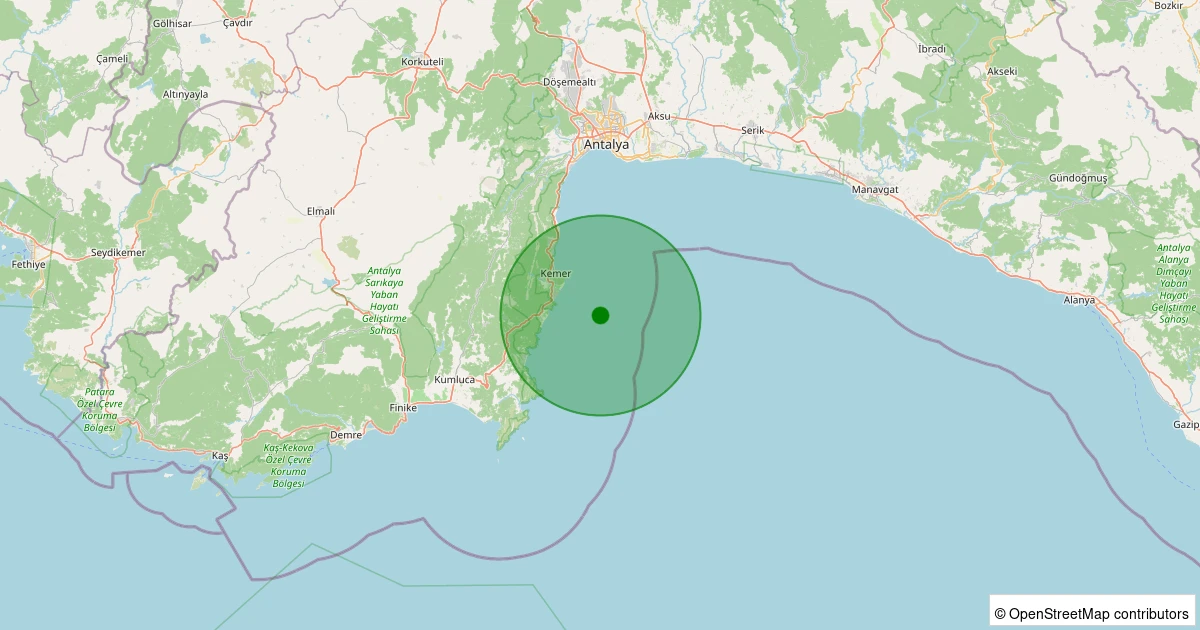Son bir hafta içerisinde Akdeniz - Antalya Körfezi - [12.30 km] Kemer (Antalya) noktasından 100 km yarıçap içerisinde toplamda 56 deprem kaydedilmiştir. Bu depremlerden en büyüğü 4.7 büyüklüğünde ve en sığ odaklısı 4.60 kilometre derinlikte gerçekleşmiştir.