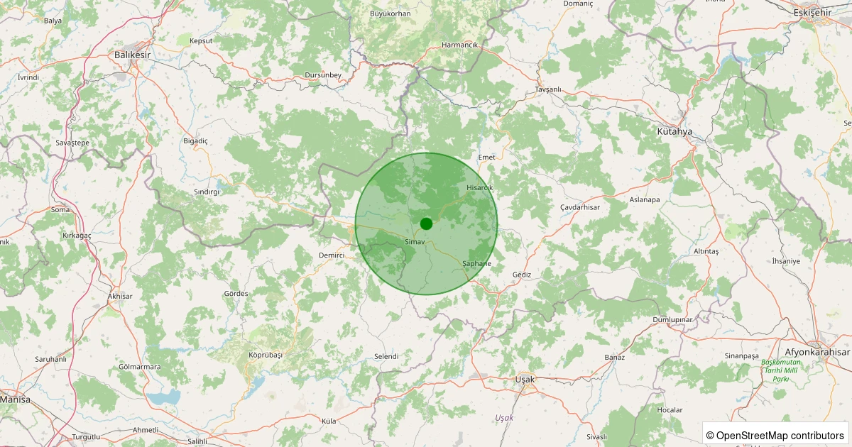 Son 7 gün içinde Simav - Ahlatlıçeşme Köyü noktasından 100 km yarıçap içerisinde meydana gelen diğer depremler: