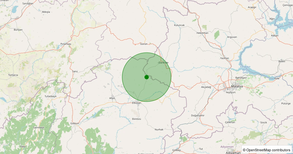 Son 7 gün içinde Darende - Yeniköy noktasından 100 km yarıçap içerisinde meydana gelen diğer depremler: