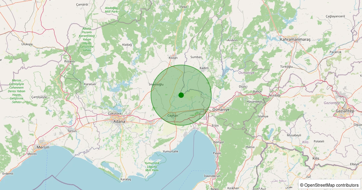 Son 7 gün içinde Kadirli - Mecidiye Köyü noktasından 100 km yarıçap içerisinde meydana gelen diğer depremler: