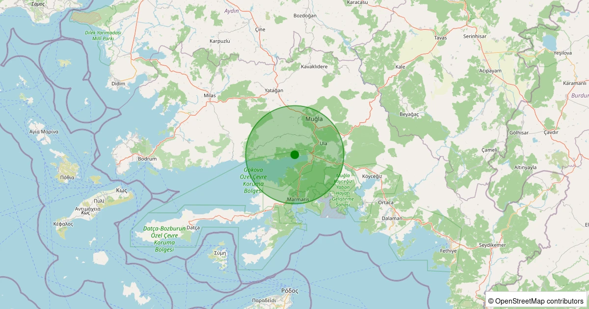 Son 7 gün içinde Menteşe noktasından 100 km yarıçap içerisinde meydana gelen diğer depremler: