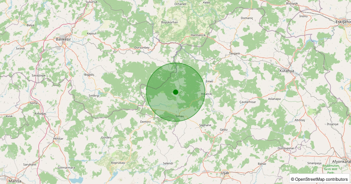 Son 7 gün içinde Simav - Karakoca Köyü noktasından 100 km yarıçap içerisinde meydana gelen diğer depremler: