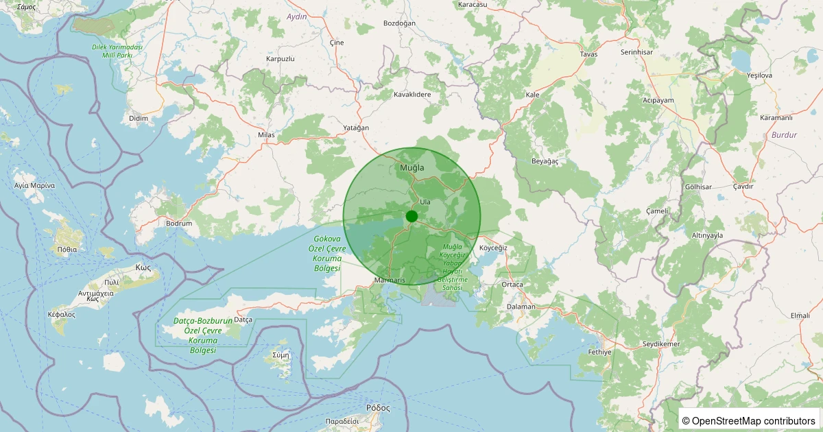 Son 7 gün içinde Ula - Gökova noktasından 100 km yarıçap içerisinde meydana gelen diğer depremler: