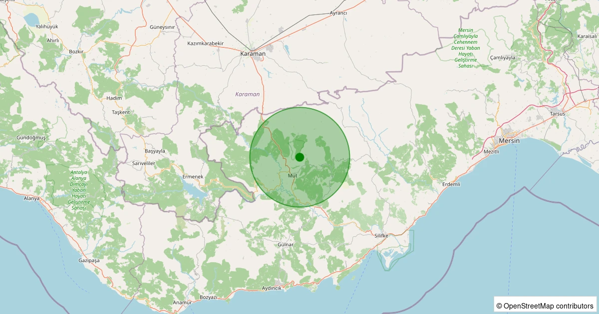 Son 7 gün içinde Mut - Topluca Köyü noktasından 100 km yarıçap içerisinde meydana gelen diğer depremler: