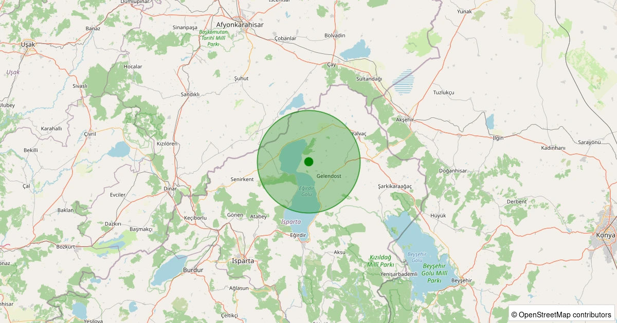 Son 7 gün içinde Gelendost - Akdağ Köyü noktasından 100 km yarıçap içerisinde meydana gelen diğer depremler: