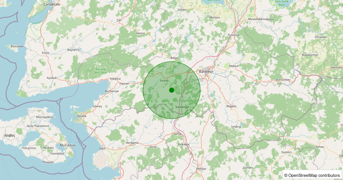 Son 7 gün içinde İvrindi - Gözlüçayır noktasından 100 km yarıçap içerisinde meydana gelen diğer depremler: