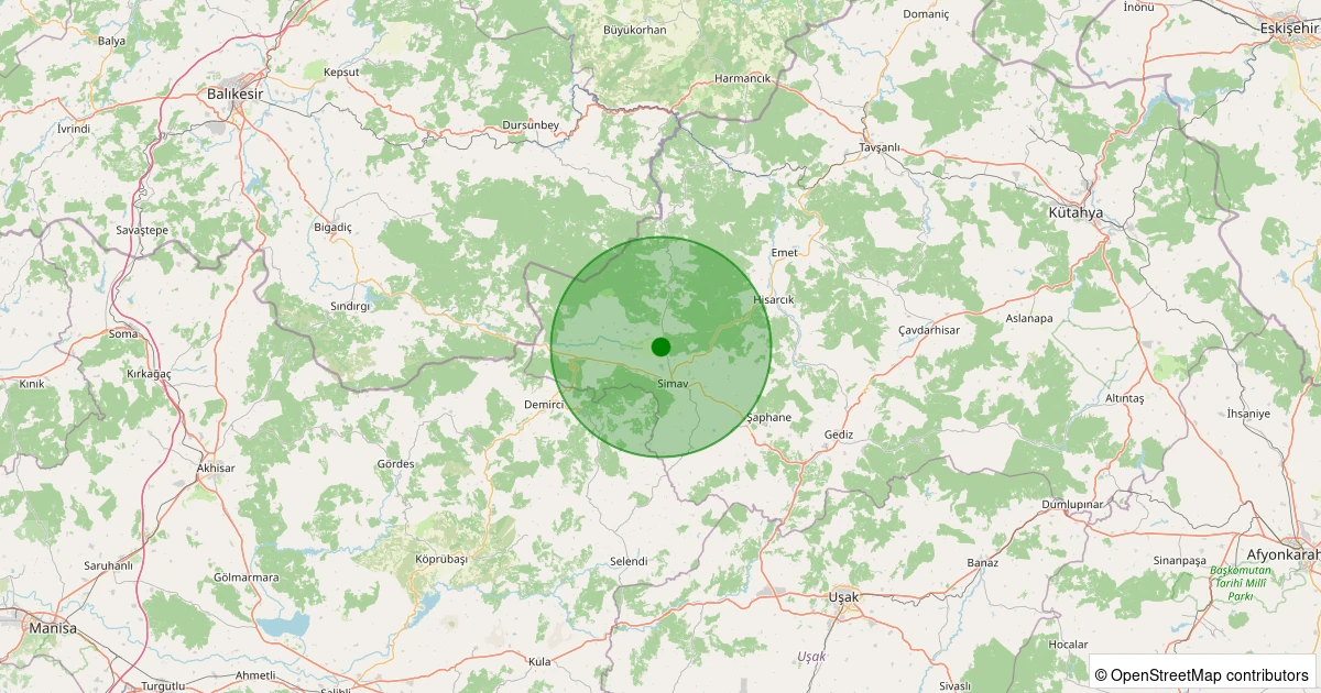 Son 7 gün içinde Simav - Naşa/Cumhuriyet noktasından 100 km yarıçap içerisinde meydana gelen diğer depremler:
