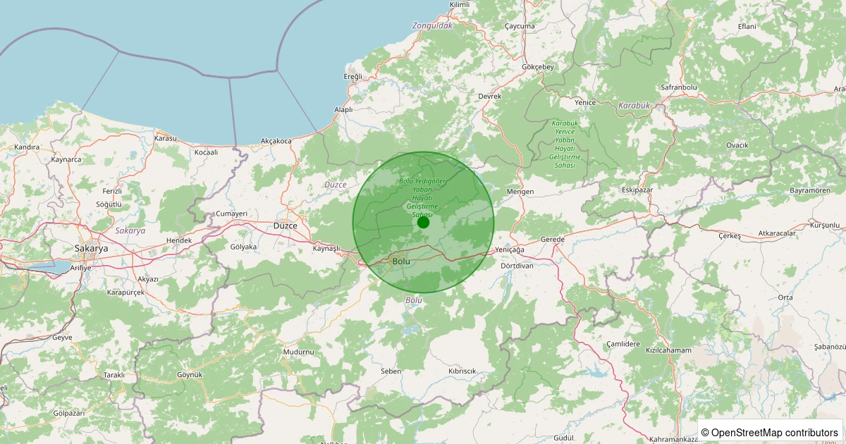 Son bir hafta içerisinde Bolu şehri Merkez noktasından 100 km yarıçap içerisinde toplamda 54 deprem kaydedilmiştir. Bu depremlerden en büyüğü 2.6 büyüklüğünde ve en sığ odaklısı 0.00 kilometre derinlikte gerçekleşmiştir.