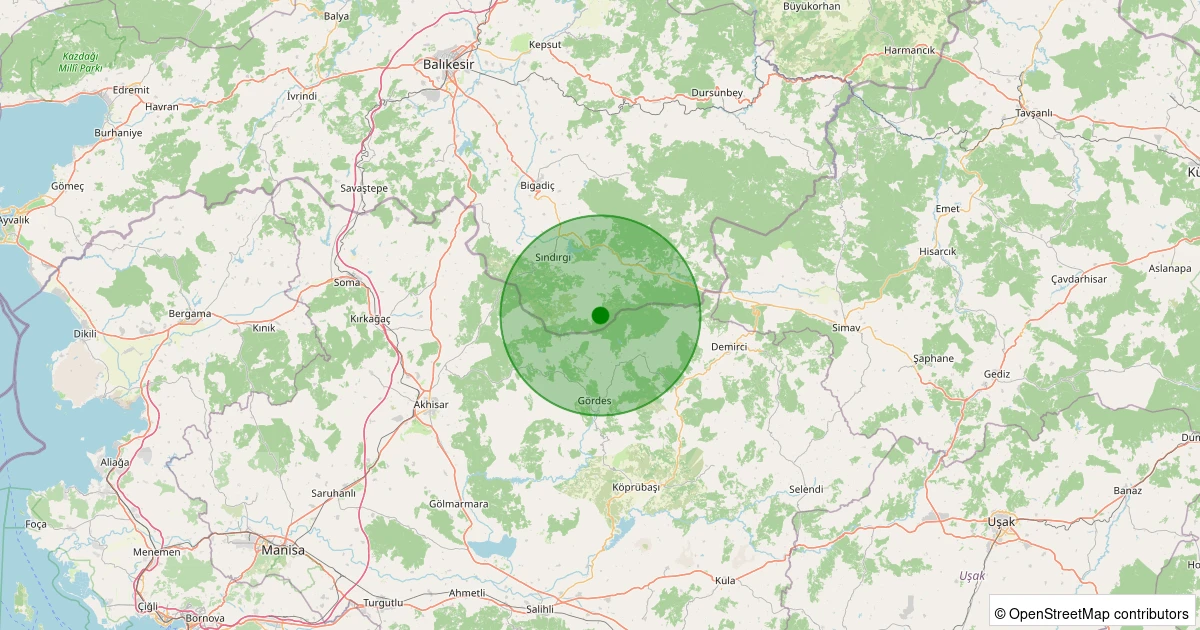 Son 7 gün içinde Sındırgı - Yüreğil/Merkez noktasından 100 km yarıçap içerisinde meydana gelen diğer depremler: