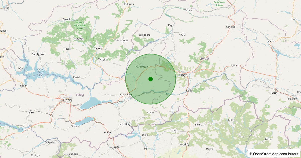 Son 7 gün içinde Kovancılar - A.Demirci Köyü noktasından 100 km yarıçap içerisinde meydana gelen diğer depremler: