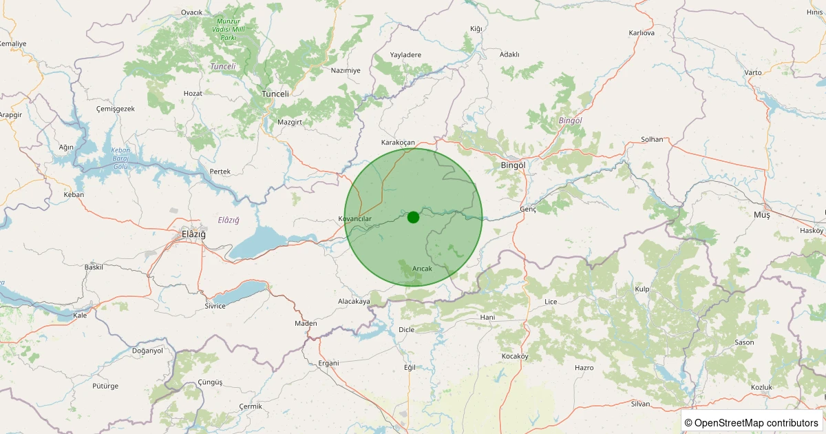 Son 7 gün içinde Palu noktasından 100 km yarıçap içerisinde meydana gelen diğer depremler: