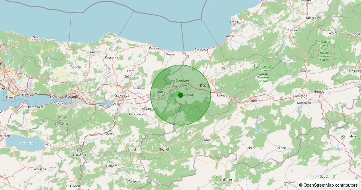 Son 7 gün içinde Gölyaka - Zekeriya Köyü noktasından 100 km yarıçap içerisinde meydana gelen diğer depremler: