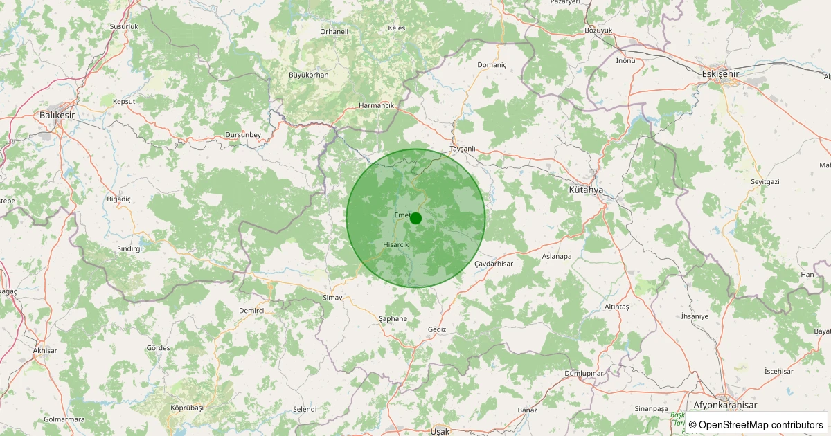 Son 7 gün içinde Emet - Bahatlar Köyü noktasından 100 km yarıçap içerisinde meydana gelen diğer depremler: