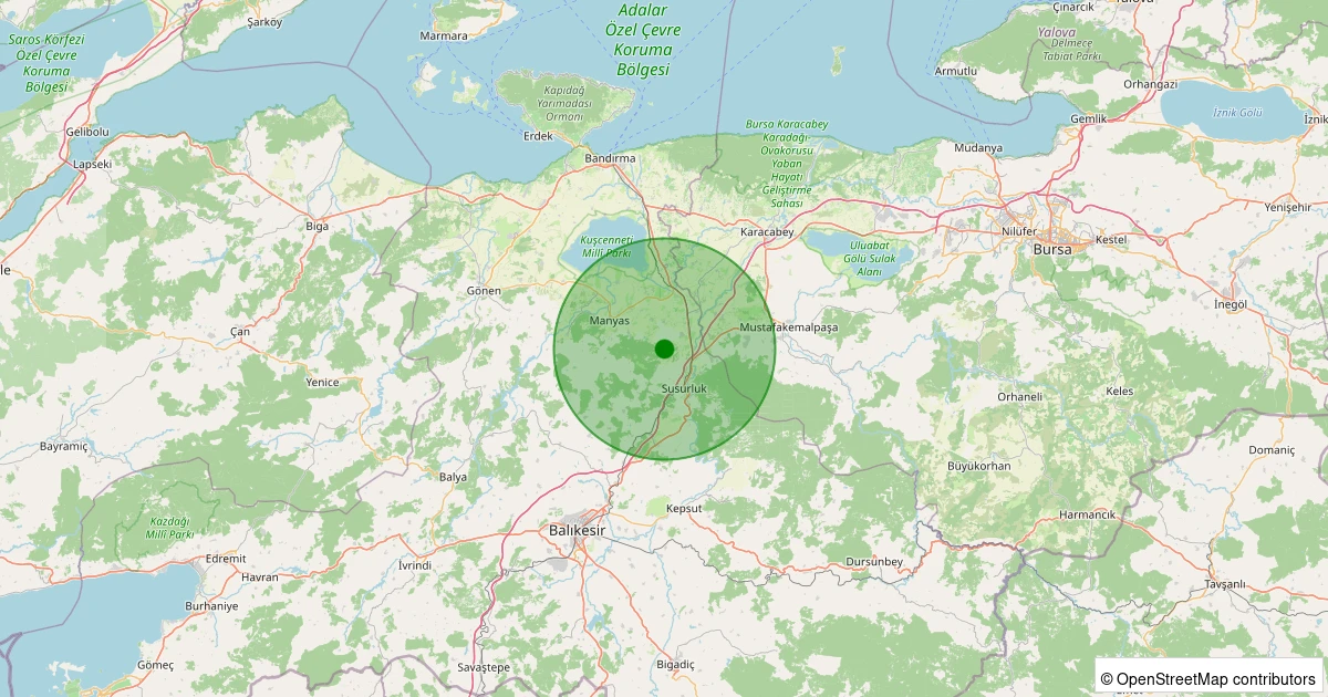 Son 7 gün içinde Susurluk - Söve noktasından 100 km yarıçap içerisinde meydana gelen diğer depremler: