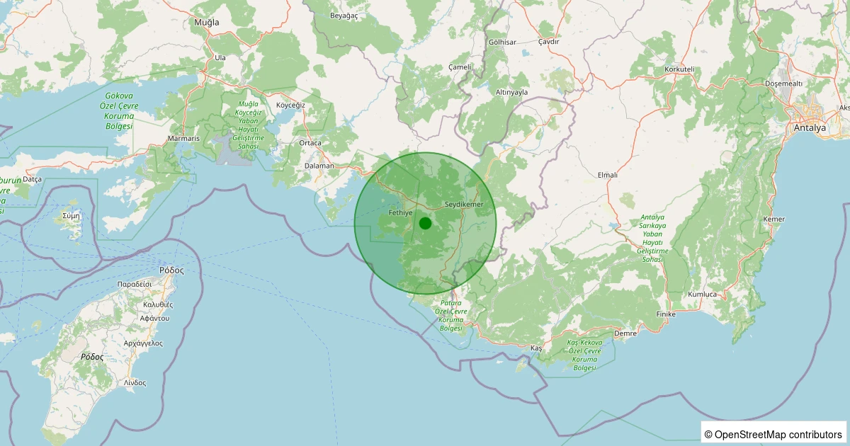 Son 7 gün içinde Fethiye - Esenköy noktasından 100 km yarıçap içerisinde meydana gelen diğer depremler: