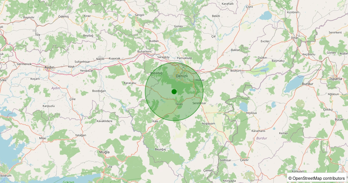 Son 7 gün içinde Tavas - Kızılcabölük noktasından 100 km yarıçap içerisinde meydana gelen diğer depremler: