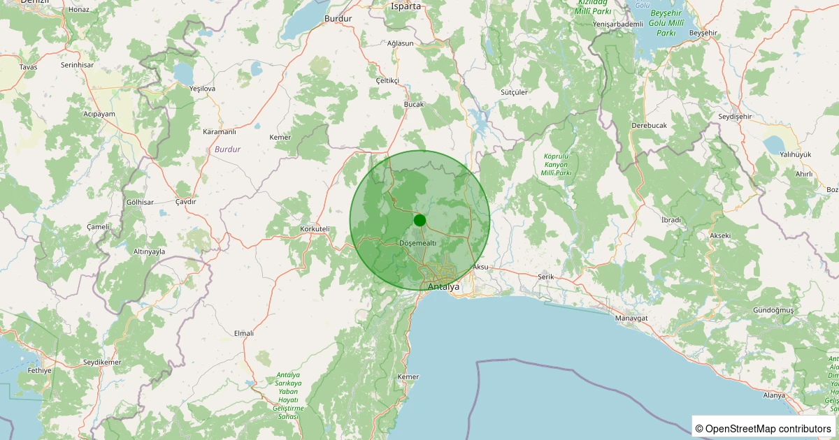 Son 7 gün içinde Döşemealtı - Kömürcüler noktasından 100 km yarıçap içerisinde meydana gelen diğer depremler: