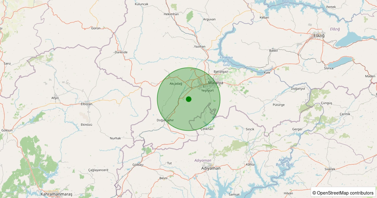 Son bir hafta içerisinde Malatya şehri Yeşilyurt noktasından 100 km yarıçap içerisinde toplamda 192 deprem kaydedilmiştir. Bu depremlerden en büyüğü 3.1 büyüklüğünde ve en sığ odaklısı 2.50 kilometre derinlikte gerçekleşmiştir.