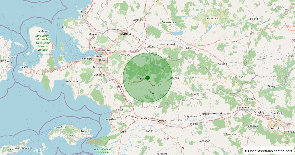 Son 7 gün içinde Bayındır - Turan noktasından 100 km yarıçap içerisinde meydana gelen diğer depremler: