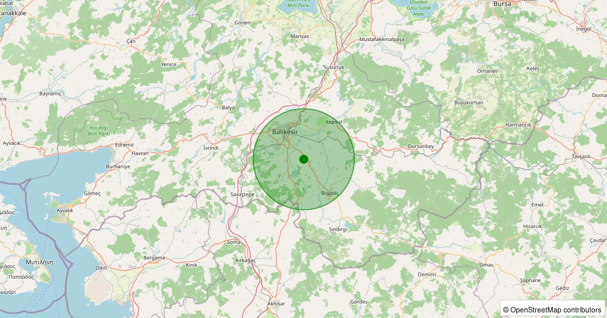 Son 7 gün içinde Altıeylül - Paşaköy noktasından 100 km yarıçap içerisinde meydana gelen diğer depremler: