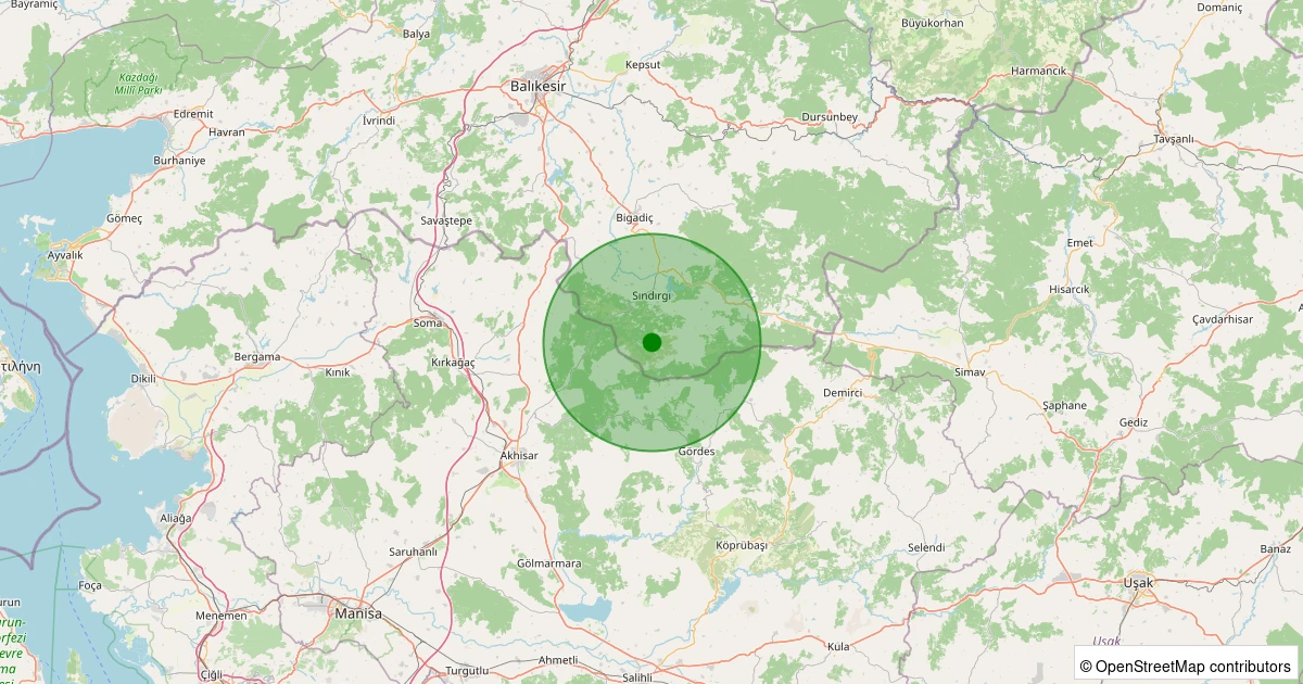 Son 7 gün içinde Sındırgı - Aktaş noktasından 100 km yarıçap içerisinde meydana gelen diğer depremler: