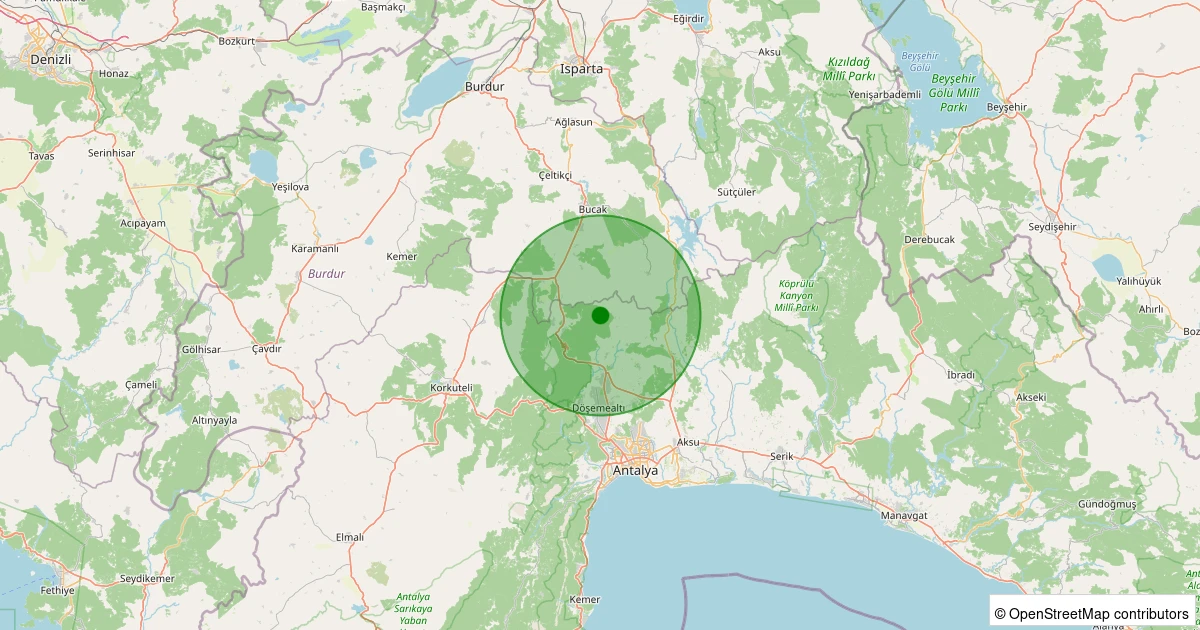 Son 7 gün içinde Döşemealtı - Mellidağ/Cumhuriyet noktasından 100 km yarıçap içerisinde meydana gelen diğer depremler: