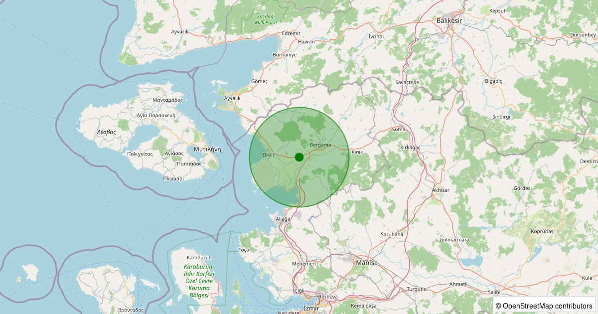 Son 7 gün içinde Bergama - Ovacık noktasından 100 km yarıçap içerisinde meydana gelen diğer depremler: